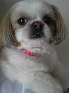 抱っこして僕の肩に乗っている七ちゃんです。ちょっと右目に涙が出ています。最近!本当に表情が豊かになってきて、ビックリすることが多くなりました。2歳と半年を過ぎて、意思の疎通もバッチリです!