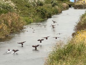 「かわいいかも」にもう一度会いたくなって来てしまいました。『あ!いたいた』って車から降りて橋に近ずくと、サッとこのようになってしまいました。一斉に飛んで奥の方に、僕から離れて安心できるところへと行ってしまいました。『ビックリさせてごめんね!』と繰り返し言って車に戻りました。驚かせるつもりは全くないのですが、確りと周囲を見ていて、その一羽が飛び立つと一斉に行動を起こします。やはり!確りとしたリーダーがいる!ということなんです。これはもう、とても大切なことを教えてくれたような氣がしています。『ありがとう!』^^