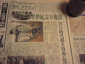 2015年12月31日!今年最後の北日本新聞にとても嬉しい記事が載っていました。僕は今年の締めに!このブログを綴る事にしました。1961年に販売された初代クラウンです。僕と同い年の54歳です!もう少しで55歳ですが、今!レストア中なのです。よくぞ「富ナン」が現存していたものです!本当に感動ものです。