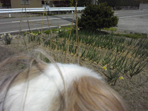 七ちゃんとお昼ごはんを頂いてから自家菜園へ行きました。七ちゃんの大好きな「日向ぼっこ」とタマネギの成長を見ようと思ったのです。去年の12月と2月に肥料をたくさん施したので元気にそして立派に成長してくれました。肥料は少なくても、多すぎてもいけないと患者さんにご教授を頂いていますので、気をつけて管理!いや、お世話をしています。今年のタマネギは今のところ「いいね!」って感じだと思っています。『これから夏野菜の準備も始めないとね』ってタマネギ畑を見ながら七ちゃんに言われているところです。「また手伝ってね」ってお願いしておきました。「よお~し!張り切っていくぞぉ~」『無理せず頑張ってね』^^/