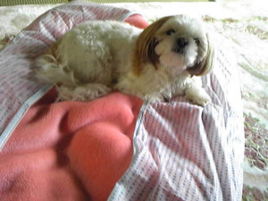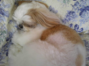 昨夜は雷さんや風さんにアラレちゃんが次々にやってきて七ちゃんは熟睡できませんでした。だから今日は食べては寝て、また食べて寝て過ごしていました。なかなか寝れなかったときはいつもそう!やっぱり聴覚や嗅覚などは僕たち人間の何倍なのでしょうか?凄い音!怖いんだなと思います。朝起きると僕の横ですやすやと安心して寝ていました。
