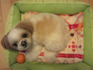 平成30年は戌年『今年は七の年だからね』とストーブの前でくつろぐ七ちゃんなのです。お母さんに大好きなミカンをもらいました。^^