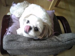 朝ごはんを食べて専用の椅子に寝そべる七ちゃん!「食べてすぐに寝ると牛になるぞっ」といってもそ知らぬ顔でペロペロしています。ホントに好きなことばかりしているのでストレスなんかないのじゃないかと思います。でも僕と一緒でお腹がふくよかなところがチョット氣になるところです。『またクロスランドおやべに行って一緒に歩こっ!』って言ってくれるので「うん」って返事をしておきました。「ありがとう」^^