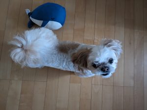 七ちゃん!僕がzoomをしていたのですが、ずっと静かに待っていてくれたので「おりこうさんでした」と誉めてあげたところです。七ちゃんには、厳しい言葉や力での「躾」は決して行なわず、優しい言葉で「褒める」ように「躾」をしてきました。「躾」という文字から『身』を『美』しくと書き示されています。「日本語とは何と奥が深いのだろう」と七ちゃんの姿を目にして胸が熱くなるのを心地よく感じています。「七ちゃん!おりこうさんだったねぇ~、本当にありがとう」^^/
