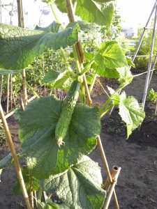 「最近!キュウリの葉が白い!うどん粉になった」という声をよくお聞きします!うどん粉はうどん粉病のことを指しています。『うどん粉病』とは、名前の通り、植物の葉の表面に白いカビが生える病気で、丁度!葉にうどん粉をまぶしたような状態になることから名付けられました。正にそのまんまですね!原因は糸状菌といわれるカビで、土や落ち葉の中に潜んでいます。それが風で飛ばされて他の植物に付着して増殖します。畝の土壌にチッソが多すぎたりカリウム不足だと、うどん粉病にかかりやすくなるといわれています。うどん粉病にかかると光合成がうまく行なえず枯れてしまいます。また他にも広がってしまいますので、早期発見!早期対策!が必要で最も大切になります。対策として「木酢液」「竹酢液」「お酢」「重曹」を水で薄めたものを散布します。もちろん!白い斑点のある葉は摘み取ります!我が家の自家菜園では、土壌に「木酢液」や「竹酢液」をかけたり苗が伸び出してからも定期的に生長点から茎や葉すべてにかけていましたので、今でも元氣に育ってくれています。もちろん!化学薬品は必要としません!!冷蔵庫に入っている「お酢」でも凄くその力を発揮してくれますので是非!お試しください。美味しく頂いて免疫力UPですね。^^/