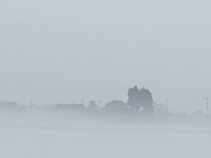 今日のお昼休みに外を見ると、田圃から靄が流れ広がっています!道も白くなり視界が狭くなってきて、車の運転も氣をつけなければなりません。ですが、なかなか美しい光景となりますのでシャッターチャンス!とばかりに撮ってみました。白鳥や鶴などの白は、見事な迄の存在感にて魅了します!ゆらゆらと広がってゆく靄は、周り全体を薄っすらと白で包み込むという大自然の大きさで魅了します!どちらも大自然の恵みであると氣づきます!そう考えると今迄の生活や物の価値観などが大きく変わるのかもしれませんね。^^