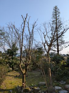 造園業のみなさんに自宅の庭の木を剪定して頂きました。良き日に恵まれ、そしてスムーズに行なって頂くことができました。とても明るくスッキリとしました。鬱蒼とした緑から爽やかさを感じる姿に変化して、僕のこころも何故かスッキリしたように感じています。やはり、これから夏に向けて氣温が高くなってきますので、樹木も風通しが良ければ過ごしやすいのではないかと思います。杉木も剪定をし過ぎると枯れてしまいます!丁度良い加減になっているのを目にして、とても満足しているところです。みなさんのおかげで、とても氣持ち良くスッキリしました。大感謝です!
