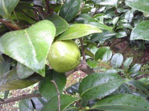 小雨の中、庭を散策していたら何と!美味しそうな果実を見つけてしまいました。近づいてみると小さいリンゴのような実です。うれしくなって「これ何だっけ?」と考えていると!?「あ!ここに椿の花が咲いてた」と思い出したのです。『椿の実』でした。美味しく食べれそうな感じはするのですが、調べてみても余り食用には向かないようです。油を絞って「椿油」にして整髪料とするか、天ぷら油として使うかしかないようでした。コロナ禍の影響で、外出の自粛中に色々と周りを散策してみるのもなかなか良いものです。またぶらりと七ちゃんと一緒に出かけてみようと思います。^^/