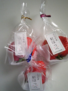 1個づつ包装された「紅ほっぺ」をガイアとなみさんで購入してきました。とにかく大っき~いのです!そしてめっちゃ甘く、香りがいいのです。「なあ~にひと口で」なんて無理無理!ぜ~ったいに無理!いや、でも来場所大関取りの朝乃山関ならひと口でいけると思います。ひとつ七ちゃんと分け合って頂きました。だけどてっぺんの激甘部分は七ちゃんに奪われ、僕は葉っぱの部分を頂きました。だけどやっぱりうまかったです。「大玉紅ほっぺをありがとうガイアとなみさん!また行きま~す」^^/