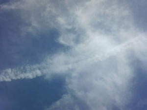 太陽の上に怒った七ちゃんの顔に見える雲があったのでパチリ!横にもう一匹連れています。雲って一瞬一瞬の変化があります。その一瞬に、はまっちゃうと非常に面白いです。以前にも患者さんに「柴田接骨院の上空に『山』そのものの雲が出ています」と言われ出てみると「山」の下がちょっとだけ伸びた状態になっていました。でも確かに「山」であったことが分かりました。コロナ禍のテレビばかり見ているのをちょっとだけ空に向けてみるのも楽しいかもしれません。雲って面白いですよ~。