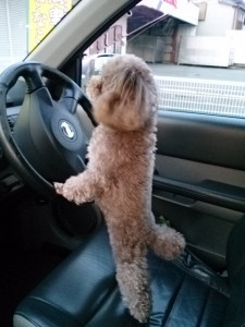 友人の愛犬モコに運転をお願いして買い物に行きました!何~んてことはありません。だけどカワイイモコショットです!^^