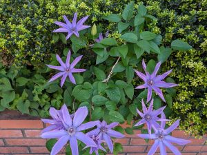 柴田接骨院の玄関横にクレマチスが咲いてくれました。僕が植えた訳でもないのに5.6年前から存在しています!紫色に近くて、とても気に入っています。去年までは、その横庭に植えてある榊の前に棚を作って這わせていたのですが、今年はしませんでした。来年はまた竹を使って棚を作ってあげたいと思っています。去年に少しだけですが、お分けしたお店には「キレイなクレマチスの花が3つ咲きました」と凄く喜んでおられたのが、僕としてはとても嬉しかったです。『ありがとうございます』^^/