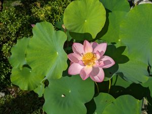 昨日の朝に本家さんに行くとたくさんの花たちが『おっ!よく来た、よく来た』と迎えてくれました。中でも、なかなかお目にかかれない蓮が風に揺られながら「わたしが咲いているのは明日までなので間に合いましたね!」と優しく声をかけてくれました。「蓮の花言葉」は「清らかな心」「神聖」です。正に雰囲気がピッタリ!やさしく心が清らかになるのが不思議ですね。開花から4日間!朝だけ咲いているなんてステキです。
