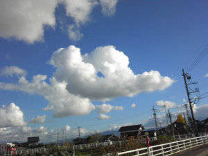 ごしんじょう療法の治療依頼があり、その帰り道!おもしろい雲を発見して車を停めました。気になると、どうしても撮りたくなるのです。^^