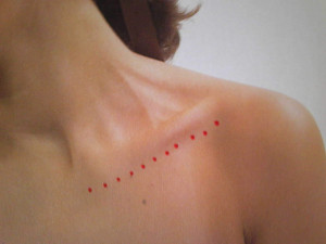 腰の痛みや肩の痛み、膝の痛みに頭痛など、なかなか引かない痛みにからだの不調!このような長引く痛みや不調に良い方法を今回!お伝えしたいと思います。鎖骨の下に赤い点が示されています。これは左の鎖骨ですが左右同じですのでよろしくお願いします。長引く痛みや不調のある方の鎖骨下を順次押さえていきますと必ず強い痛みがあります!その部分をやや強めに刺激を加えてください。1・2・3でよろしいと思います。いかがでしょう!?痛みや不調が消え去っていますか?もしくは軽減していますか?