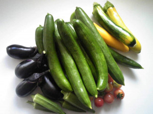 今朝は5:00から自宅菜園に出て、水を撒いてから収穫を楽しみました。キュウリにナス、ズッキーニとオクラにミニトマトを収穫して、水洗いをして拭き取ります。これらが色んな料理に花を添えるのです。今までにも「よごし」「漬物」「油炒め」「ジュース」等々、結構美味しく、楽しんでいます。だから我が家では、夏の時期に太るのです。^^
