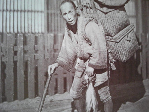 この方は昨日紹介した『強力』(ごうりき)です。「剛力」とも表されています。木で造られた背負子にたくさんの荷物を運んでいます。