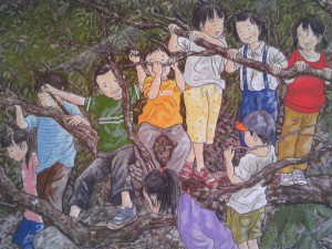 宮脇春美さんのパステル画は、とにかくこころに響く何か!があります。僕が彼女の作品を好むのは、子供の頃に見た!純粋なこころのままで見た!何処かの風景が思い浮かび、今の自分自身にしみ込んだものがはがれ落ち、そのときのこころに戻れるような・・・。