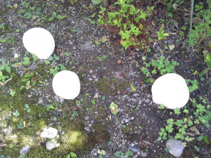 またしても柿の木の下に鬼瘤(オニフスベ)君が出てきてくれました。それも三兄弟で!この鬼瘤君を連れてきたのがタヌキの親子だったんです。いつも柿の実を食べにやって来ていたんですが、そのからだに胞子を付けていたらしく、そんな縁があったことから鬼瘤君と出会えたということです。もう少しでサッカーボールくらいに成長すると思いますが、子どもの頃は帰り道、鬼瘤君を蹴りながら、同級生にパスをしながら遊んでいたことを思い出します。強く蹴りますと「ボフッ」と破れて中から黒い煙(胞子)が飛び出します。一応!食べることもできるそうですが、僕は頂いたことはなく、どんな味なのかは不明です。^^