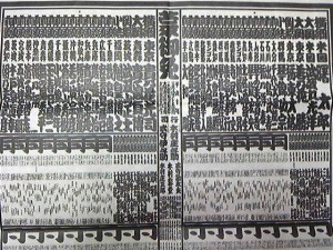 関取は一番上の字がしっかりと読める幕内と、二段目右端の十両力士だけです。そこまで出世するのも力士の実力次第!一番下の序の口は、虫メガネがないと読めないほど細く書かれています。番付は行司さんのお仕事で、相撲独特の字がとても素敵ですね。