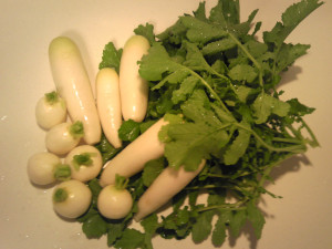 冬の野菜が旨味を増す「寒締め野菜」は寒さが厳しくなると、野菜自ら細胞が凍らないように水分を減らし、糖分やビタミン類を増やす「低温順化」というすばらしい能力を持っています。これを上手に利用して「寒締め野菜」「寒〆野菜」「雪中野菜」と呼ばれています。野菜は大根、白菜、ネギ、ほうれん草、小松菜などがこれから出回ってきますので「旬の野菜の旨味」を「冬の味覚」を存分に楽しみたいと思います。^^/